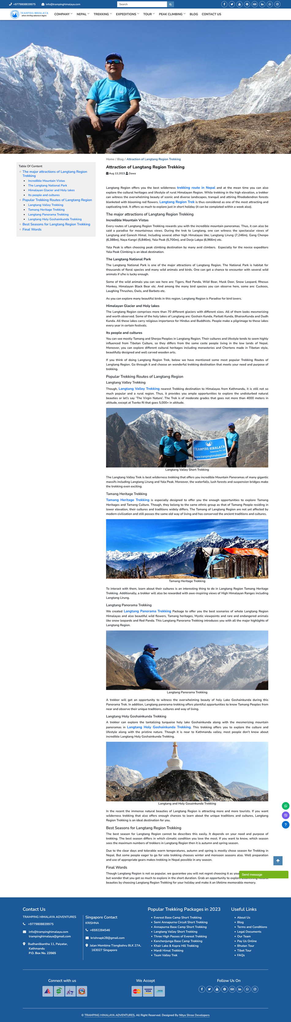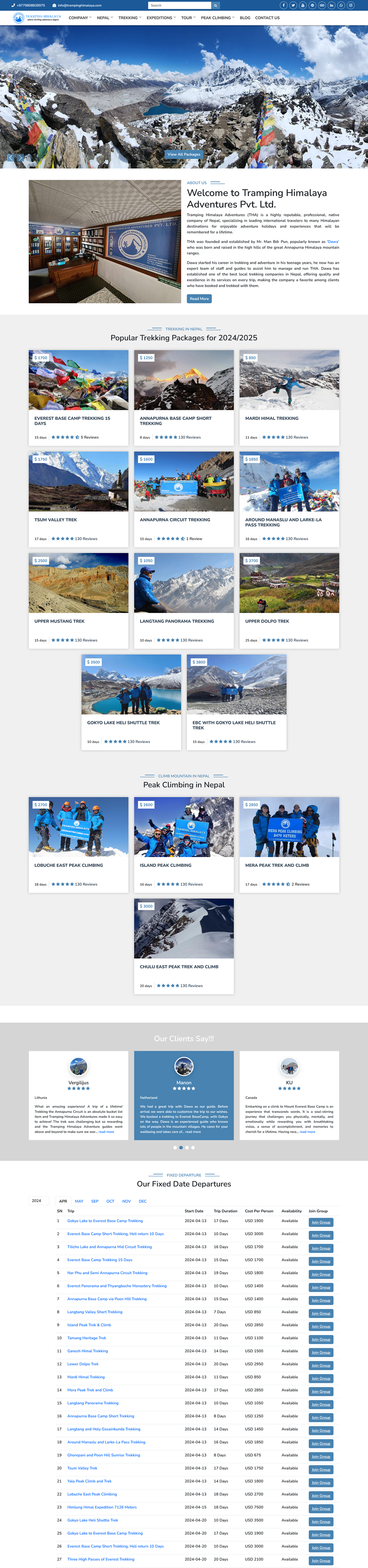 By combining intuitive navigation, comprehensive tour information, and seamless booking functionality, the Travel and Tour Management web app for Tramping Himalaya Adventure provides a one-stop solution for travelers seeking unforgettable experiences in the Himalayas. Whether planning a trekking expedition, cultural tour, or wildlife safari, users can rely on this platform to facilitate their journey and create lifelong memories amidst the breathtaking landscapes of Nepal.